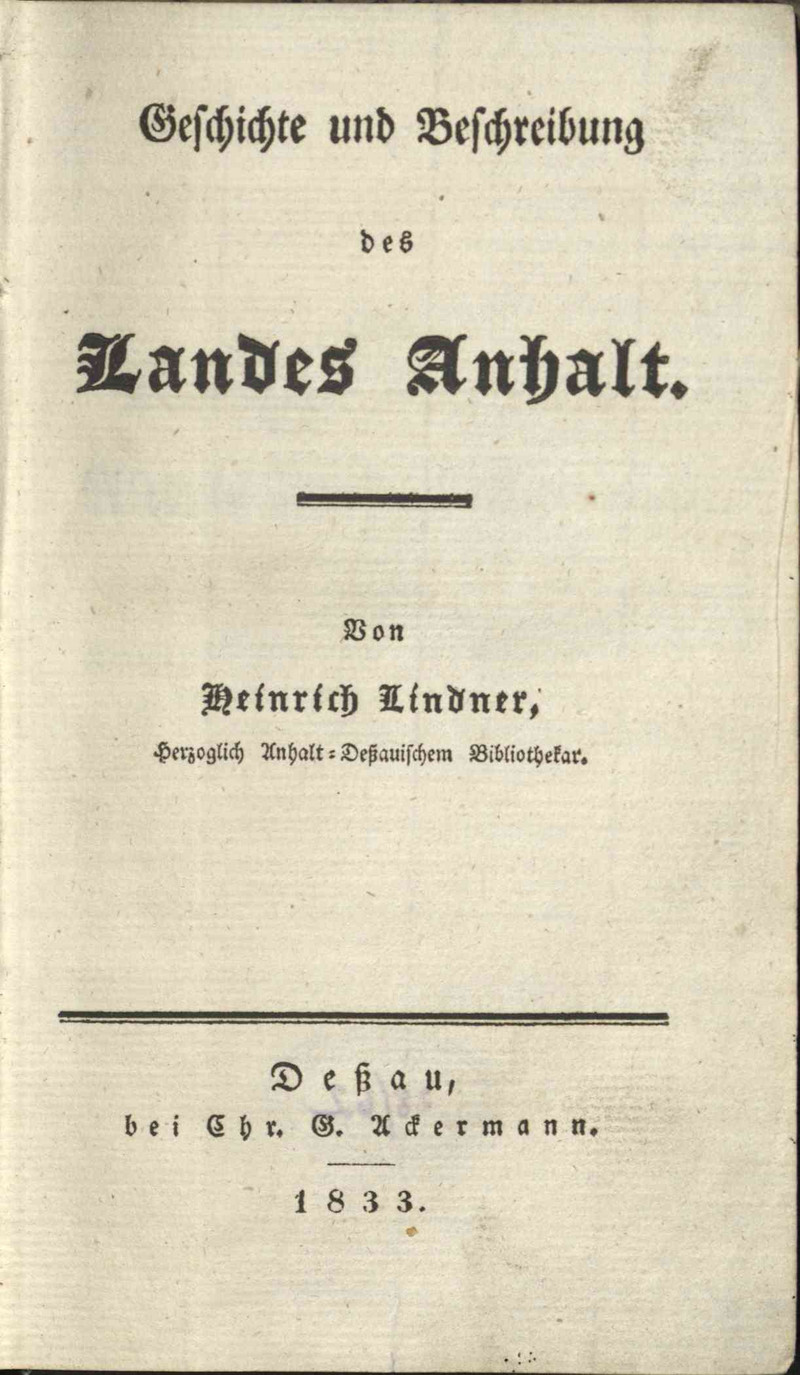 Heinrich Lindners Buchprojekt einer „Geographie von Anhalt“